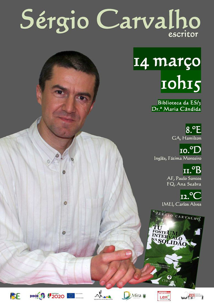 A convite das Bibliotecas Escolares e da Coordenação das Ofertas Formativas, estará em Mira, no dia 14 de março, o escritor Sérgio Carvalho, para um encontro com as turmas de CEF e de Ensino Profissional.
