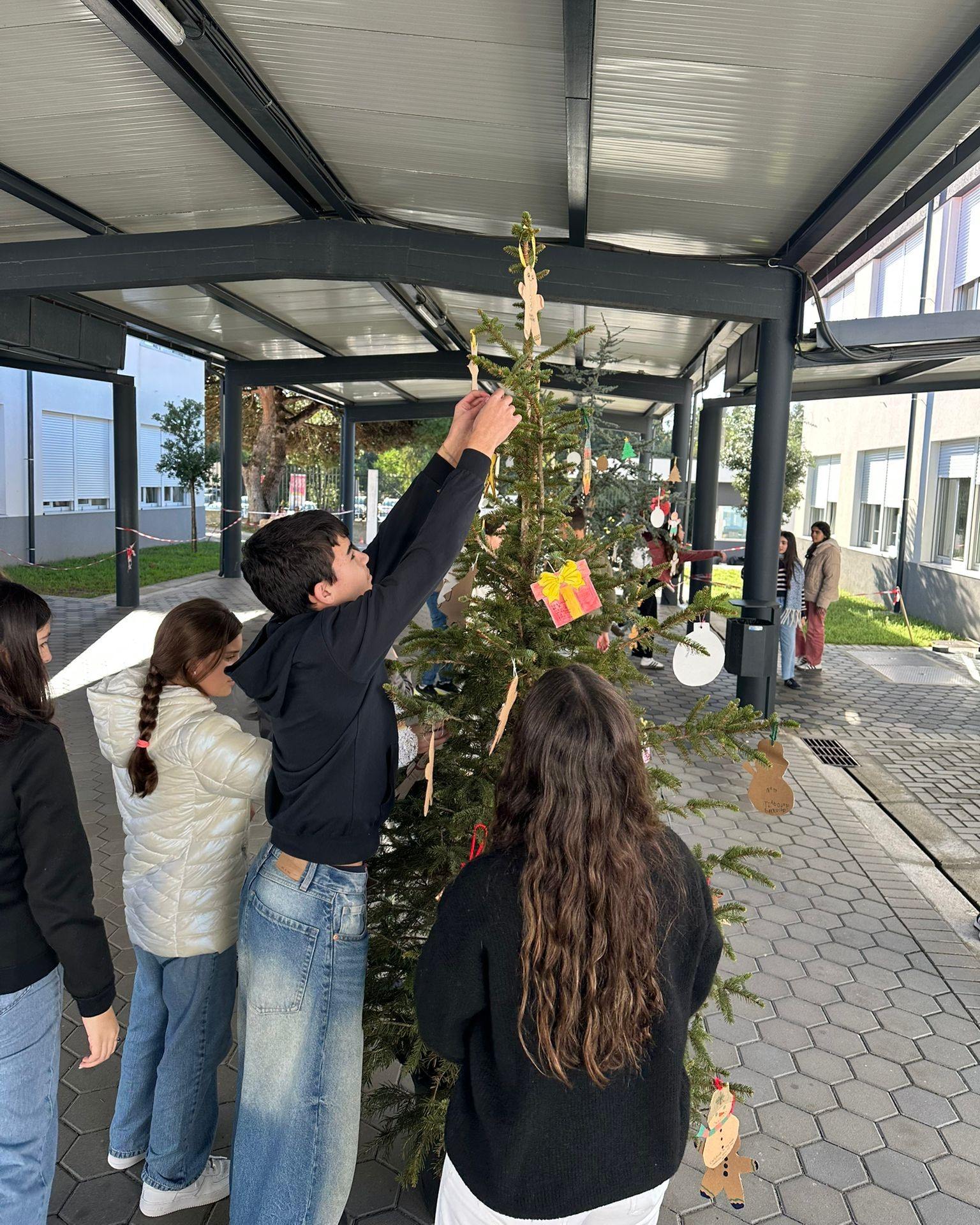 As turmas do 7.º ano desenvolveram o projeto “O Natal em Palavras”, uma iniciativa conjunta das disciplinas de Português, Inglês, Espanhol, Francês, Educação Visual e Cidadania, em colaboração com a Associação de Estudantes do AEMIRA.As Árvores de Natal da Escola Secundária Dra. Maria Cândida ganharam vida com ornamentos criados a partir de materiais reutilizados, demonstrando criatividade, consciência ambiental e espírito colaborativo. Em cada enfeite, os alunos escreveram frases alusivas à quadra natalícia em várias línguas, celebrando assim a diversidade cultural que caracteriza o nosso contexto escolar e promovendo valores de respeito, inclusão e cidadania.