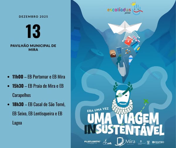 No próximo dia 13 de dezembro, o Pavilhão Municipal de Mira recebe a 4.ª edição das Escolíadas Júnior, um projeto artístico que promove a criatividade, a cidadania e a consciência ambiental entre os mais jovens. Este ano, o tema “Uma Viagem INSustentável” desafia-nos a refletir sobre os nossos hábitos e sobre o impacto que deixamos no planeta.Aviso à Comunidade Educativa – Possíveis Perturbações no Funcionamento das Atividades Letivas