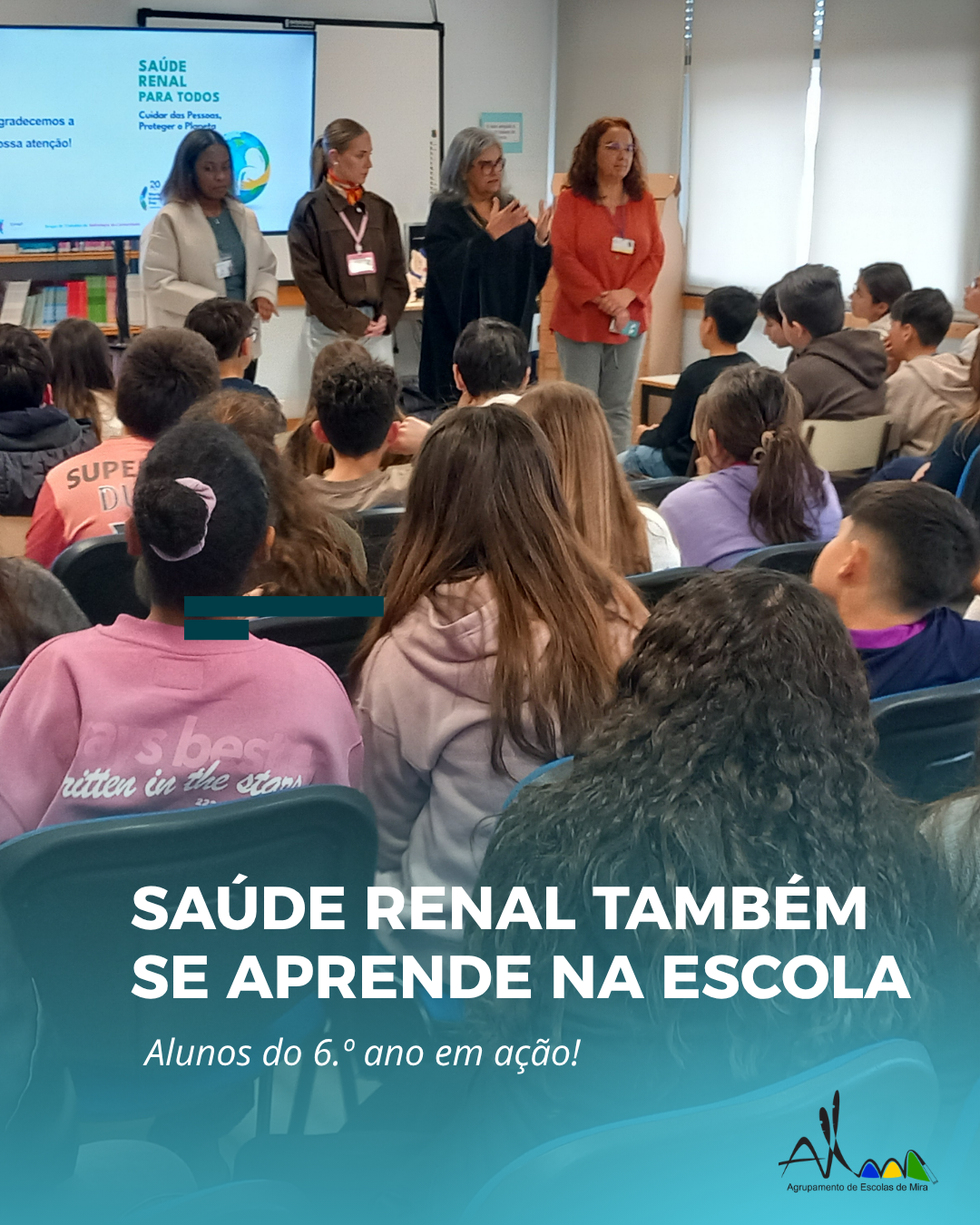 No passado dia 13 de março, a Biblioteca da EB2 de Mira transformou-se num espaço de aprendizagem, sensibilização e prevenção. No âmbito da comemoração do Dia Mundial do Rim, a escola recebeu a ação de sensibilização “Saúde Renal Para Todos”, dirigida a todas as turmas do 6.º ano.