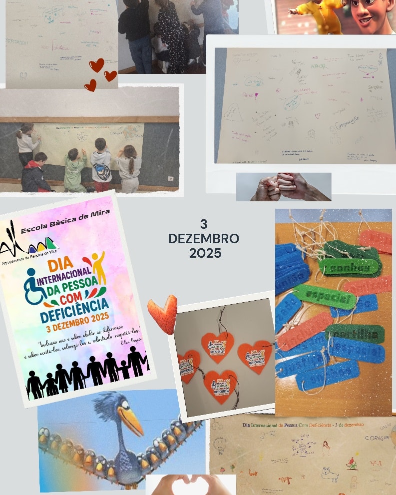 No dia 3 de dezembro de 2025, os docentes de Educação Especial em articulação com os docentes da Escola Básica de Mira, Escola Básica do Casal de S. Tomé e Escola Básica dos Carapelhos, assinalaram o Dia Internacional da Pessoa com Deficiência. Esta data visa promover a reflexão sobre a inclusão, a acessibilidade e a igualdade de oportunidades. Todos nós, como membros de uma comunidade verdadeiramente inclusiva, devemos reafirmar o compromisso de continuar a remover barreiras, físicas e sociais, para que todos os cidadãos possam viver com dignidade, autonomia e participação plena.