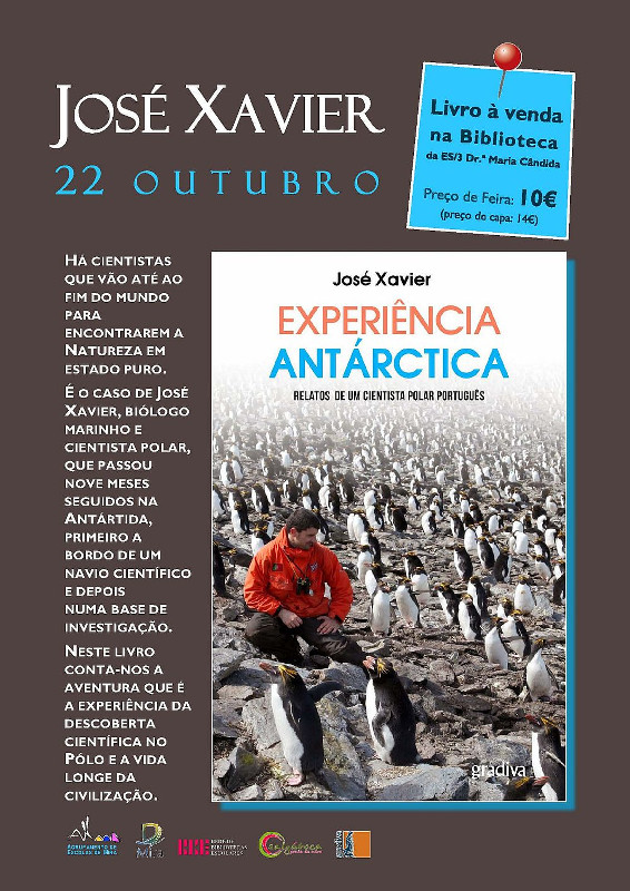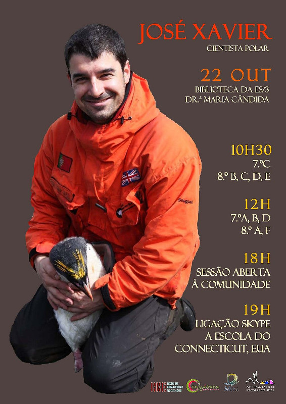 No próximo dia 22 de outubro, as turmas de 7.º e 8.º ano encontrar-se-ão com o biólogo marinho e cientista polar José Xavier, na Biblioteca da Escola Secundária Dr.ª Maria Cândida.